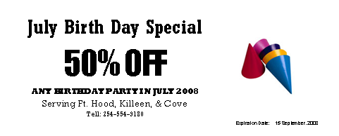 Summer Special Rate $395, complete with: · lighting · four hours of service. Birthday and Back To School Parties only.